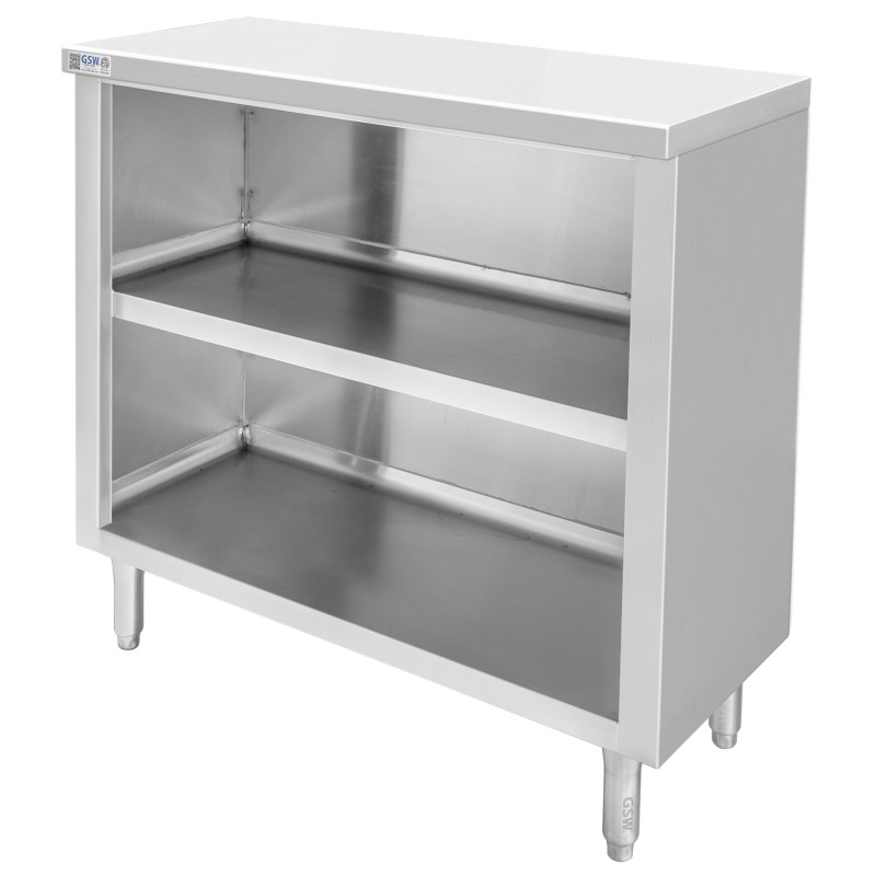 全不锈钢工作台柜,提供多种尺寸及滑动门等前端设计,可选封闭式或开放式结构。集操作台面与储物功能于一体,适合商用厨房、备餐区及各类餐饮场所使用。